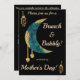 Invitación Luna dorada azul, corazones amarillos Día de la Ma
