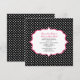 Invitaciones modernas y elegantes para celebrar solo la recepción con lunares negros y blancos y marco rosa. Personalice con su propia información. Son ideales cuando se ha celebrado una ceremonia privada pero se quiere celebrar con amigos y familiares. Si necesita mover el texto, o cambiar el tamaño, la fuente o el color, ¡Haga clic en Personalizar! Esto es perfecto para la novia con presupuesto limitado porque la información de RSVP está incluida en el reverso. Si desea un RSVP por separado o necesita ayuda, utilice el enlace de contacto debajo del producto.