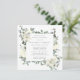 La elegante invitación a la ducha de novia cuenta con un marco botánico de flores blancas y hojas verdes profundas.