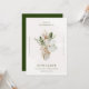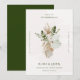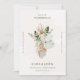 Estas invitaciones bodas de boho de moda presentan una composición abstracta de varios botánicos tropicales - hojas de palma, pampas, flores y helechos, e incluso falsos acentos de oro. Todos aparecen en un suave fondo de textura neutra, con un color verde profundo en la parte posterior y un diseño de texto moderno.