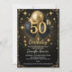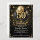 Invitación Luxury 50th Birthday Black Gold Balloon Glitter