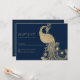 This gorgeous glam wedding invitation design features luxury navy blue and gold royal peacock bird elegant Wedding RSVP invitations that are perfect for any classy and sophisticated ceremony. This exquisite geometric design is ideal for the trendy and stylish couple. Customize this design with your message and personalized information. All designs are printed.