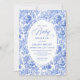 Invitación Luxury Deep Blue Toile Roses Baby Shower Invites