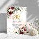 Invitación Luxury Deep Red Floral Gold 90th Birthday Invite