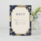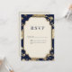 Luxury Ivory Navy Blue Gold Floral RSVP Invitations – Invite your guests in style with this luxurious ivory wedding invitation, adorned with navy blue and gold floral accents. The rich color palette exudes sophistication and timeless elegance. Perfect for a royal or classic-themed wedding celebration.