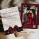 Invitación Luxury plaid Burgundy Bow Winter Photo Wedding