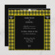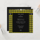 Original invitación a boda escocesa de clan tartán en MacLachlan Vestido diseño moderno. Florece en plata y diamante sobre fondo negro