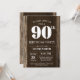 Invitación rústica de cumpleaños 90 con antecedentes de madera rústica. País retro vintage. Cumpleaños de adultos. Cumpleaños de hombres o mujeres. Invite a un niño o Chica Lady Teen Teenage Bday. 13a 15a 16a 18a 20a 30a 40a 50a 60a 70a 80a 90a 100a. Cualquier edad.