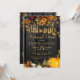 Hermoso naranja oxidado y oscuro otoño borgoñoso, flores y bordes de calabaza con cuerdas de luces de centelleo doradas sobre un fondo de madera oscura de granero, haciendo un encantador y elegante ensayo de boda, invitación a la cena con un moderno guión de tipografía de oro escrito a mano. ++++++++ Fácil de personalizar con tus detalles! Adecuado para la tradicional otoño rústica | país | granja | patio trasero al aire libre antes de fiestas de boda / barbacoas.