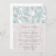 Invitaciones de recepción de playa de madera blanqueada con conchas marinas con un diseño rústico y elegante de madera blanqueada, con un esquema de color azul y beige, que presenta una ilustración del contorno de conchas marinas a lo largo de la parte superior. Los detalles de su boda y recepción personalizados están impresos en marrón y beige sobre el fondo de madera blanqueada. Estas invitaciones de recepción de boda con conchas marinas son perfectas para sus celebraciones posteriores a la boda con tema de playa. Están disponibles tarjetas de respuesta y otros artículos coincidentes.