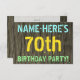 Este divertido diseño de invitación para fiestas de cumpleaños incluye un mensaje como "¡NOMBRE DE LA FIESTA DEL CUMPLEAÑOS DE AQUÍ!", donde el nombre puede ser personalizado, en la parte delantera. El fondo está decorado con un estilo rústico, marrón y falso de aspecto de grano de madera. El texto del mensaje de personalizable en la parte delantera presenta colores como azul, amarillo y verde, y tiene un aspecto inspirado en el de las letras pintadas y estampadas. En la parte posterior se muestra un mensaje personalizado que podría incluir detalles importantes sobre la fiesta de cumpleaños, como cuándo y dónde se celebra, junto con cualquier otra información que sea relevante. Las invitaciones a fiestas de cumpleaños como esta pueden ser una manera divertida de invitar a familiares y amigos a una fiesta de cumpleaños que se lleva a cabo para alguien que está celebrando su septuagésimo cumpleaños. [~Z0000291]