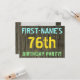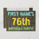 Este divertido diseño de invitación para fiestas de cumpleaños incluye un mensaje como "¡FIESTA DEL CUMPLEAÑOS 76 DE NOMBRE PRIMERO!", donde el nombre puede ser personalizado, en la parte delantera. El fondo está decorado con un estilo rústico, marrón y falso de aspecto de grano de madera. El texto del mensaje de personalizable en la parte delantera presenta colores como azul, amarillo y verde, y tiene un aspecto inspirado en el de las letras pintadas y estampadas. En la parte posterior se muestra un mensaje personalizado que podría incluir detalles relevantes sobre la fiesta de cumpleaños, como cuándo y dónde se celebra, junto con cualquier otra información que sea importante. Las invitaciones a fiestas de cumpleaños como esta podrían ser una manera divertida de invitar a familiares y amigos a una fiesta de cumpleaños que se lleva a cabo para alguien que está celebrando su cumpleaños setenta y seis. [~Z0000291]