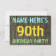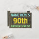 Este divertido diseño de invitaciones para fiestas de cumpleaños incluye un mensaje como "¡NOMBRE DE LA FIESTA DE CUMPLEAÑOS DE AQUÍ!", donde el nombre puede ser personalizado, en la parte delantera. El fondo está decorado con un estilo rústico, marrón y falso de aspecto de grano de madera. El texto del mensaje de personalizable en la parte delantera presenta colores como azul, amarillo y verde, y tiene un aspecto inspirado en el de las letras pintadas y estampadas. En la parte posterior aparece un mensaje personalizado que podría incluir detalles relevantes sobre la fiesta de cumpleaños, como cuándo y dónde se celebra, junto con cualquier otra información que sea importante. Las invitaciones de cumpleaños como esta pueden ser una manera divertida de invitar a familiares y amigos a una fiesta de cumpleaños que se lleva a cabo para alguien que está celebrando su cumpleaños número noventa. [~Z0000291]