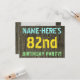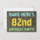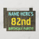 Este divertido diseño de invitación para fiestas de cumpleaños incluye un mensaje como "¡NOMBRE DE LA FIESTA DEL CUMPLEAÑOS DE AQUÍ!", donde el nombre puede ser personalizado, en la parte delantera. El fondo está decorado con un estilo rústico, marrón y falso de aspecto de grano de madera. El texto del mensaje de personalizable en la parte delantera presenta colores como azul, amarillo y verde, y tiene un aspecto inspirado en el de las letras pintadas y estampadas. En la parte posterior aparece un mensaje personalizado que podría incluir detalles relevantes sobre la fiesta de cumpleaños, como cuándo y dónde se celebra, junto con cualquier otra información que sea importante. Las invitaciones a fiestas de cumpleaños como esta pueden ser una manera divertida de invitar a familiares y amigos a una fiesta de cumpleaños que se lleva a cabo para alguien que está celebrando su cumpleaños número ochenta y dos. [~Z0000291]
