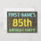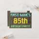 Este divertido diseño de invitación para fiestas de cumpleaños incluye un mensaje como "¡FIESTA DE CUMPLEAÑOS 85 DE PRIMER NOMBRE!", donde el nombre puede ser personalizado, en la parte delantera. El fondo está decorado con un estilo rústico, marrón y falso de aspecto de grano de madera. El texto del mensaje de personalizable en la parte delantera presenta colores como azul, amarillo y verde, y tiene un aspecto inspirado en el de las letras pintadas y estampadas. En la parte posterior se muestra un mensaje personalizado que podría incluir detalles relevantes sobre la fiesta de cumpleaños, como cuándo y dónde se celebra, junto con cualquier otra información que sea importante. Las invitaciones a fiestas de cumpleaños como esta pueden ser una manera divertida de invitar a familiares y amigos a una fiesta de cumpleaños que se lleva a cabo para alguien que está celebrando su cumpleaños número ochenta y cinco. [~Z0000291]