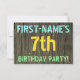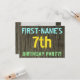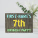 Este divertido diseño de invitación para fiestas de cumpleaños incluye un mensaje como "¡PARTIDA DE CUMPLEAÑOS DE NOMBRE PRIMERO!", donde el nombre puede ser personalizado, en la parte delantera. El fondo está decorado con un estilo rústico, marrón y falso de aspecto de grano de madera. El texto del mensaje de personalizable en la parte delantera presenta colores como azul, amarillo y verde, y tiene un aspecto inspirado en el de las letras pintadas y estampadas. En la parte posterior se muestra un mensaje personalizado que podría incluir detalles importantes sobre la fiesta de cumpleaños, como cuándo y dónde se celebra, junto con cualquier otra información que sea relevante. Las invitaciones a fiestas de cumpleaños como esta pueden ser una manera divertida de invitar a familiares y amigos a una fiesta de cumpleaños que se lleva a cabo para alguien que está celebrando su séptimo cumpleaños. [~Z0000291]