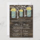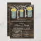 Madera de grano y luces de cuerda , jarras de albañilería con flores amarillas claras y llaves antiguas invitaciones rústicas a fiestas de limpieza