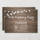 Invitación rústica de cumpleaños número 90 con fondo de madera de String Lights. 13.º 15.º 16.º 18.º 21.30.40.50.60.70.80.90.100, Cualquier edad. Para una mayor personalización, haga clic en el botón "Personalizar" y utilice nuestra herramienta de diseño para modificar esta plantilla.