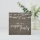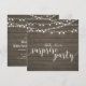 Celebre su día especial con esta elegante plantilla de invitación para una fiesta sorpresa. Este diseño presenta caligrafía chic y luces de cuerda con un fondo de madera rústica. Perfecto para una fiesta de aniversario de bodas en el patio trasero, granero o con tema vintage.
