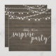 Celebre su día especial con esta plantilla de invitación para una fiesta sorpresa con estilo. Este diseño presenta caligrafía elegante y luces de cuerda con un fondo de madera rústica. Perfecto para una fiesta de aniversario de boda en el patio trasero, granero o con un tema vintage.