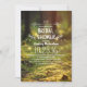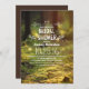 Una cálida y rústica invitación a la ducha de novias con un fondo de árboles encantados y una lujosa tipografía de remolinos a mano.