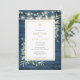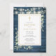 Con luces de cuerda y delicadas hojas de vegetación de acuarela sobre un fondo de madera rústica azul, y un elegante crucifijo dorado, esta invitación de bautizo o presentación puede ser personalizada con su información especial. Diseñado por Thisisnotme