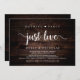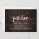 Hermosa fiesta de Nada Elegante Solo Amor, Tarjeta de anuncio / invitación de boda de huida, en diseño de madera oscura rústica moderna. Esto es perfecto para la recepción de su boda y la fiesta de celebración después de la boda. Agregue sus detalles en fuente / letra coincidente.