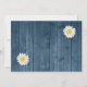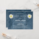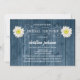 © 2013 Socialite Designs. Nuestra invitación rústica a la ducha de novia tiene un fondo de madera azul con flores de margarita blancas. El texto de la ducha de novia está rodeado por un elegante remolino. Si necesita AYUDA para personalizar esta invitación, póngase en contacto con Diseños de Socialite. Los elementos de diseño floral se pueden mover individualmente pulsando el botón "Personalizar" del naranja.
