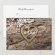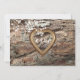 Foto de corteza de árbol con marco tallado dorado vintage para sus nombres o iniciales. Hermosas flores blancas añaden un toque de elegancia a esta tarjeta de respuesta. Hay una invitación de boda a juego.