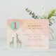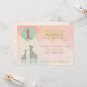 El diseño es encantador, con una jirafa de madre y bebé fascinada por un globo sobre un fondo de color con los detalles de la invitación en verde oliva. El reverso también presenta un fondo de patrón que complementa el diseño. También podrás elegir entre otros colores de fondo igualmente agradables.