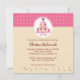 Invitación nupcial linda y moderna de la ducha. Las magdalenas de las características en un soporte con asperjan en la parte inferior. Modelo de lunares en la barra superior. Combinación del rosa y de color crema con acentos marrones y blancos.