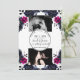 Invitación Magenta Rosa Azul Acuarela Floral Tinta Fecha de G