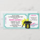 Invitación a la fiesta de cumpleaños tipo Magic Show Ticket en verde azulado y blanco, acentuado en color púrpura y rosa o elegir los colores como prefiera. Personalizar de texto para adaptarlo a sus necesidades.