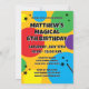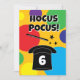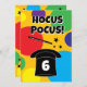 Magician hat and magic wand magical Birthday party Invitation for kids. Fun colorful template design for magic themed party. Personalize with custom name and age. Colors can be changed. Example 6th Birthday. Hocus pocus!