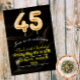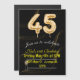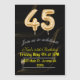 45.º número de globos negros y dorados Invitación con tema dorado y gafas de champán