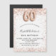 Por un elegante cumpleaños número 60. Un fondo blanco. Decorada con oro rosa, purpurina falso rosa y chispas. Personalice y agregue un nombre y detalles del fiesta. El nombre está escrito con un guión de estilo con letras a mano, número 60 con fuentes de estilo globo.