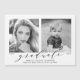 Anuncios de graduación fotográfica "De vez en cuando" que incluyen la foto preferida de tu graduado (ahora) así como una foto de un bebé o un bebé (entonces). Cambie los años siguientes a cada foto para reflejar el año de graduación y el año de nacimiento (o el año en que se tomó la foto). Los modernos anuncios de graduación muestran "graduados" en un elegante tipo de letra con el nombre del graduado, el nombre de la escuela y el año de clase que se muestra a continuación.