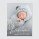 Un imán de anuncio de nacimiento de sake con la foto de tu recién nacido con "Bienvenida" en un elegante guión blanco. Añada el nombre, la fecha de nacimiento y las estadísticas de nacimiento de su bebé.