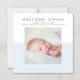 Este sencillo y elegante anuncio de natalidad incluye la foto de su bebé y un diseño minimalista de bloques de color azul claro.