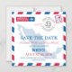 Una divertida boda creativa Guardar la fecha para enviar a todos sus invitados anunciando su boda de destino con este diseño de correo aéreo rojo y azul. Mapa de MÉXICO colocado en el centro del diseño en un color azul más claro. Si el esquema de color no es lo que deseaba, por favor envíe un correo electrónico a paula@labellarue.com ANTES de realizar un pedido para que se pueda crear un nuevo diseño para usted. ¡Feliz planeamiento Boda!