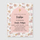 Invitación Magnética Baptismo pampas flores rosa chica rosa dorado lujo