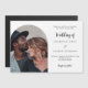 Invitación a una boda fotográfica Al frente: Añade tu propia foto vertical. Fondo blanco de moda, texto negro. Personalice y agregue sus nombres y detalles.