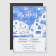 Una moderna pintura acuática de la pintoresca ciudad de Oia, en la isla griega de Santorini, para celebrar su amor con un toque de elegancia y belleza. Inspiradas por las impresionantes vistas de la isla, estas invitaciones cuentan con un fascinante cuadro acuático de Oia en tonos azules y blancos de ensueño. Perfecto para una boda de destino, estas hermosas invitaciones marcarán el tono de su día especial y asegurarán que sus invitados estén contando los días para su inolvidable celebración en Grecia. Arte original de Nic Squirrell.