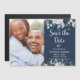 Moda, rosa botánico de color azul marino bohemio y acuarela blanca floral, boda ahorrando la cita invitaciones magnéticas. Este moderno diseño boda presenta elementos florales en color azul marino, azul claro y blanco, con plumas sobre un fondo de color azul marino oscuro. Presenta un diseño tipográfico con letras a mano con el texto "Save the Date" y una (1) foto vertical. Gran elección para otoño rústico y bohemio, bodas de invierno o cualquier temporada. Fácil de personalizar. #3353 Si necesitas ayuda o elementos coincidentes, por favor contáctame.