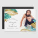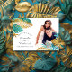 Invitación Magnética Boda Tropical Verde Azul y Dorado Guardar la Fecha