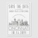 Una invitación de boda magnética única para guardar la fecha para una boda que tendrá lugar en la hermosa ciudad de Cincinnati, Ohio. Esta invitación presenta una ilustración estilizada del horizonte único de la ciudad con su nombre debajo. La información de su boda sigue esto en un estilo abierto coincidente. En el reverso de la invitación hay un color gris profundo para complementar la apariencia y sensación. Todos los elementos individuales de la tarjeta de invitación están desbloqueados, así que siéntase libre de cambiar cualquier detalle necesario, como tamaños de fuente, estilos y más, utilizando la función de personalización. Incluso puede agregar una foto de la futura novia y el novio en el reverso con un filtro en blanco y negro para que coincida con la parte delantera de la tarjeta de invitación. Cualquiera que sea su elección, recuerde divertirse siendo creativo.