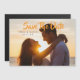 Announce your big day with this Custom Photo Save the Date Card featuring a romantic tropical beach sunset photo of the happy couple. The names 'EMILI & DANIEL' and the date '09.21.XX' are printed alongside the main image. A vibrant orange script font brightly displays 'Save The Date' above the personal details. This high-quality flat card includes a matching white envelope, making it easy to send a beautiful preview of your wedding celebration to friends and family.