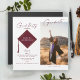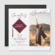 Celebre con estilo con estos modernos diseños de tarjetas de invitación a graduación en un guión de caligrafía burdeos, para la clase senior de 2022. Añada fácilmente su información personalizada y la foto de su elección. Ideal para celebraciones de secundaria, universitarias y/o universitarias.