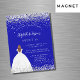Una invitación magnética moderna, elegante y glamorosa para una fiesta de 16 y 16 años de dulce. Un fondo azul real con brillantes purpurinas falsos, un chica con un vestido de bata de bola. El nombre está escrito con una escritura de estilo con letras a mano moderna. Personalice y agregue los detalles de su fiesta.