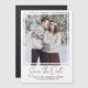 La foto de tu pareja se muestra en esta elegante tarjeta de fecha. Un simple marco blanco le da la importancia que merece. Guardar la fecha está escrito en un texto moderno y de moda. Dos líneas de texto le permiten personalizar su mensaje. Diseñado para embellecer fácilmente cualquier fotografía de estilo para cualquier temporada. Muy fácil de personalizar.